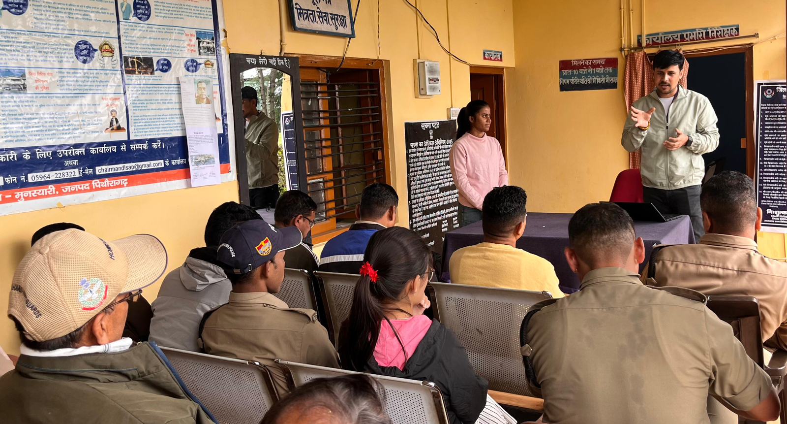 मुनस्यारी, उत्तराखंड में “नमन परियोजना” के अंतर्गत पुलिस कर्मियों के लिए मानसिक स्वास्थ्य और अधिनियमों पर विशेष व्याख्यान आयोजित किया गया। इस सत्र का विषय था – “मानसिक स्वास्थ्य देखभाल अधिनियम 2017 एवं दिव्यांगजन अधिकार अधिनियम 2016 के अंतर्गत पुलिस की भूमिका एवं जिम्मेदारियाँ तथा कार्यस्थल पर तनाव प्रबंधन”।