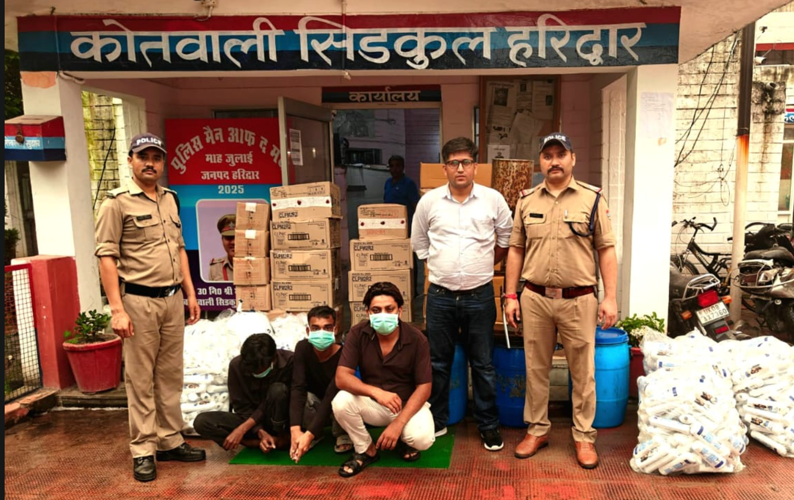मौके से तीन आरोपियों हसीन अहमद, शहबान और मोहसिन (निवासी लढौरा मंगलौर, हरिद्वार) को गिरफ्तार किया गया। इनके कब्जे से भारी मात्रा में कच्चा माल और लगभग 15 लाख रुपये मूल्य का तैयार माल बरामद हुआ। वहीं, एक आरोपी फरार होने में सफल रहा।